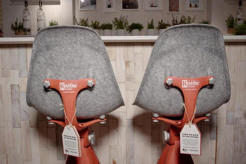 Our first project together is to re-engineer the iconic Starbucks 'Bean' chair, crafted with waste from thier own stores’ coffee cups, lids, stir sticks, etc. Modular, it can be flat packed and is predominantly made with polyethylene terephthalate, commonly known as P.E.T., the material found in plastic water bottles and frappuccino cups. The upholstery too uses the same recycled P.E.T. but transformed on precision looms into a soft but durable fabric. Using a single material across different elements of the product allows easy re-recyclability for the next reincarnation.