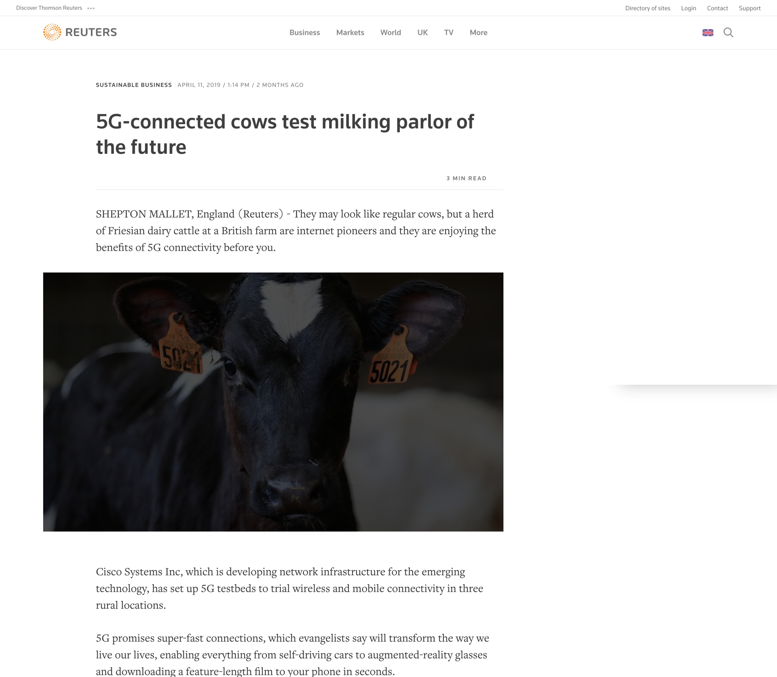 · The key message of the app and the connected farm was covered in 122 media titles, including BBC Click, BBC Farming Today, Reuters Global and CNN (headline: “How 5G will change the future of farming”), with a combined potential reach of 750 million views worldwide